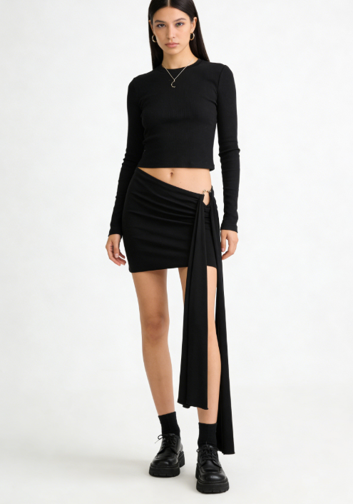 Own the moment in the Confidence Skirt. Designed to celebrate curves and movement, this ultra-flattering wrap skirt is all about statement-making ease. It hugs and drapes in all the right places, showing off just enough while keeping things effortlessly cool. Whether you're beach-bound, rooftop lounging, or out dancing under the stars, this piece was made to turn heads (and hold yours high).