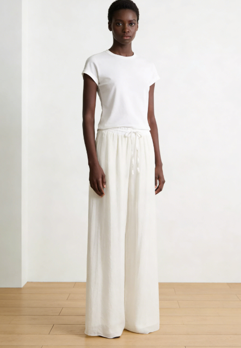These wide-leg silk-blend pants were made for summer ease. Light, flowy, and elegant.